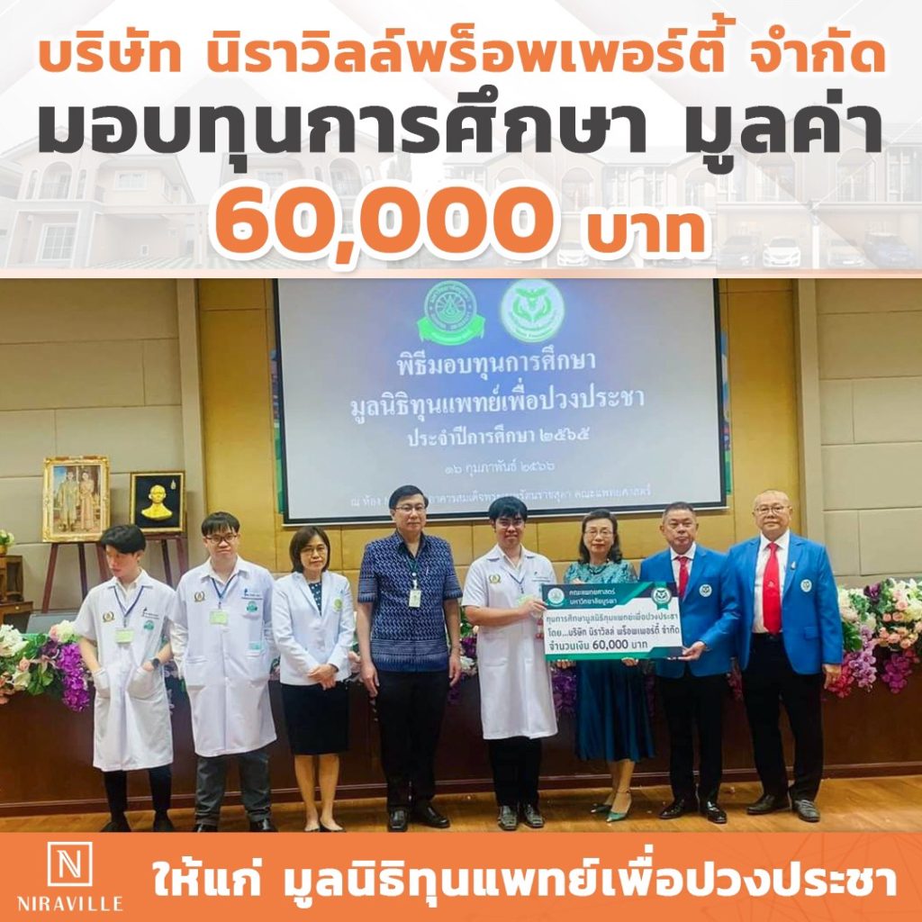 ความสุขที่มีคุณค่า ความสุขในแบบ นิราวิลล์ 23/02/202323/02/2023 niravillegroup ไม่มีหมวดหมู่ นิราวิลล์ กรุ๊ป โดย คุณสุวรรณี จินชาง ประธานบริหาร ได้มอบทุนการศึกษา แก่นิสิตแพทย์ ชั้นปี ที่ 4 มหาวิทยาลัยบูรพา จำนวน 3 ทุน Post Views: 764