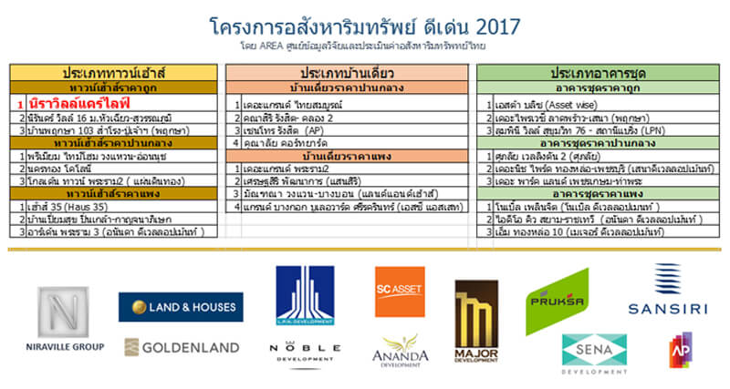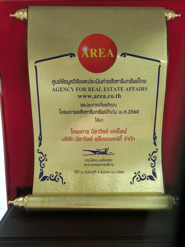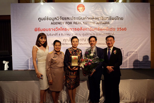 รางวัลอสังหาดีเด่นประจำปี 2560 โดย AREA ศูนย์ข้อมูลวิจัยและประเมินค่าอสังหาริมทรัพย์ไทย