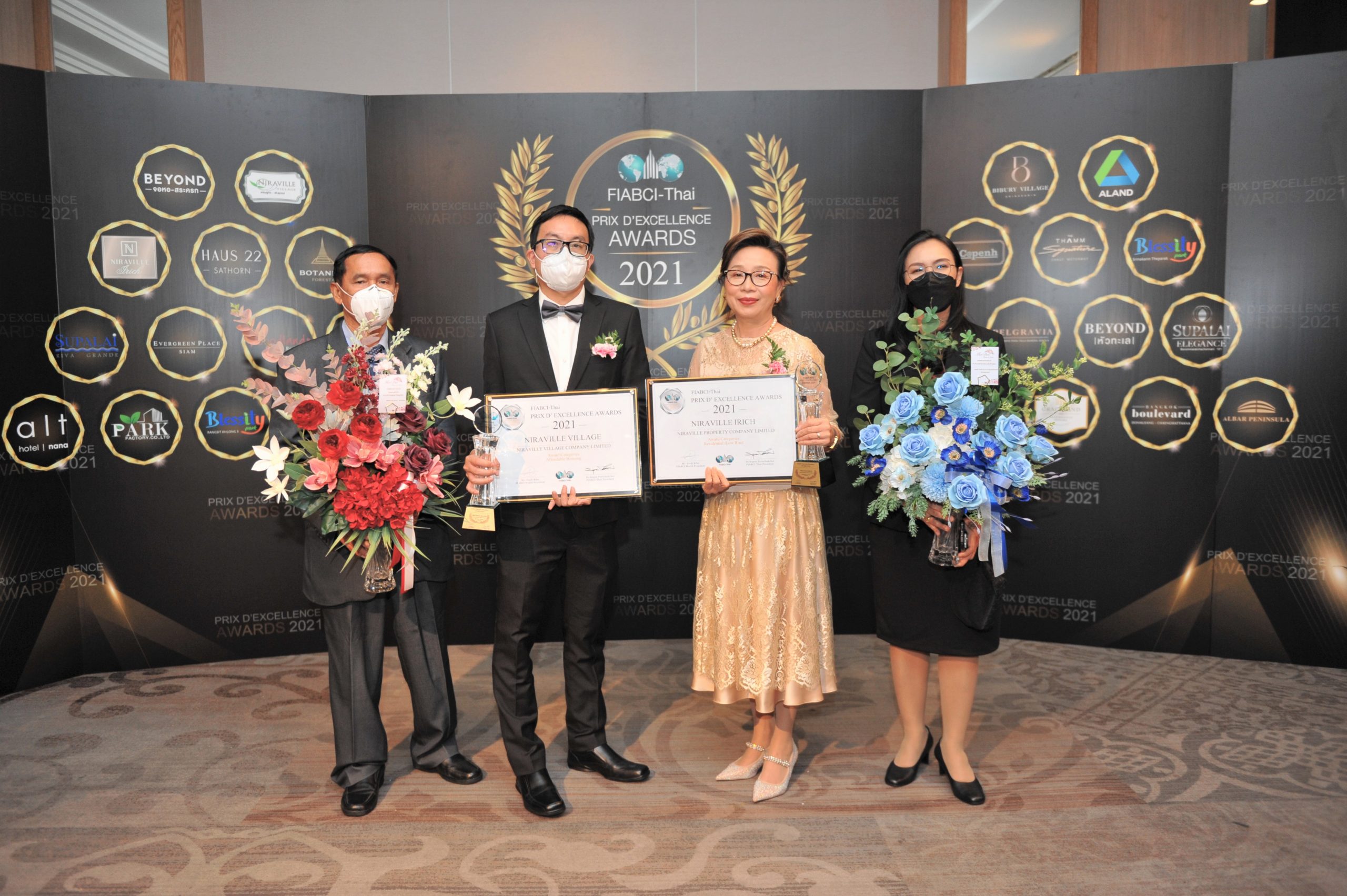 สุวรรณี จินชาง (ซ้ายมือ) ประธานเจ้าหน้าที่บริหาร บริษัท นิราวิลล์ พร้อพเพอร์ตี้ จำกัด นักพัฒนาอสังหาริมทรัพย์ที่มุ่งมั่นสร้างสรรค์ที่อยู่อาศัยคุณภาพตอบรับทุกไลฟ์สไตล์ ของคนย่านสมุทรสาคร รับรางวัลโครงการอสังหาริมทรัพย์ดีเด่น พ.ศ.2560 ประเภท ทาวน์เฮ้าส์ราคาถูก จากโครงการ “นิราวิลล์ แคร์ไลฟ์ (Niraville Care life)” ซึ่งมีความโดดเด่นของพื้นที่ส่วนกลาง สิ่งอำนวยความสะดวก รวมถึงการออกแบบ และคุณภาพของทาวน์เฮ้าส์ คุ้มค่าสำหรับการอยู่อาศัย โดยเป็นรางวัลจากการสำรวจของศูนย์ข้อมูลวิจัยและประเมินค่าอสังหาริมทรัพย์ไทย บริษัท เอเจนซี่ ฟอร์ เรียล เอสเตท แอฟแฟร์ส จำกัด ภายในงาน ได้รับเกียรติจาก ไพรวรรณ พลวัน (ที่ 2 จากซ้าย) รองปลัดกระทรวงการพัฒนาสังคมและความมั่นคงของมนุษย์ เป็นผู้มอบรางวัล ณ ศูนย์ประชุมแห่งชาติสิริกิติ์ กรุงเทพฯ เมื่อเร็วๆ นี้