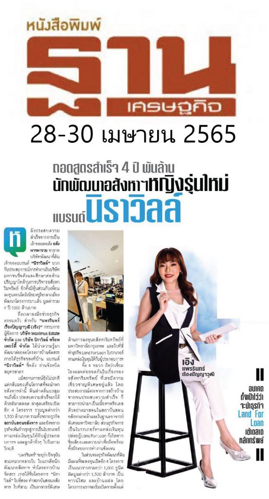 เจ้าหญิงวงการอสังหาฯ และ Gen 2 นักพัฒนาอสังหาฯรุ่นใหม่แบรนด์ นิราวิลล์ กับผลงานที่สร้างเอง พัฒนาเอง คอนโดในเมือง กับหุ้นส่วน มาแล้วมูลค่า กว่า 1,000 ล้าน
