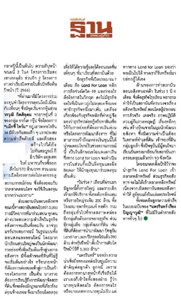 ขอบคุณ ฐานเศรษฐกิจ กับบทสัมภาษณ์คุณแพรรินทร์